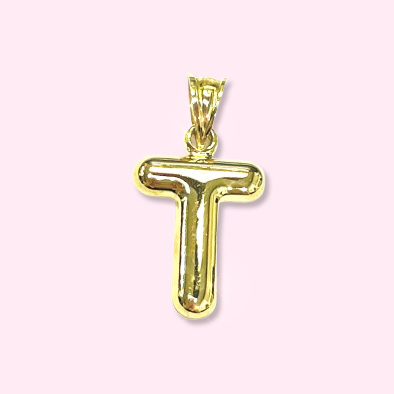 Initial T Puffy Balloon Letter 10K Yellow Gold Pendant