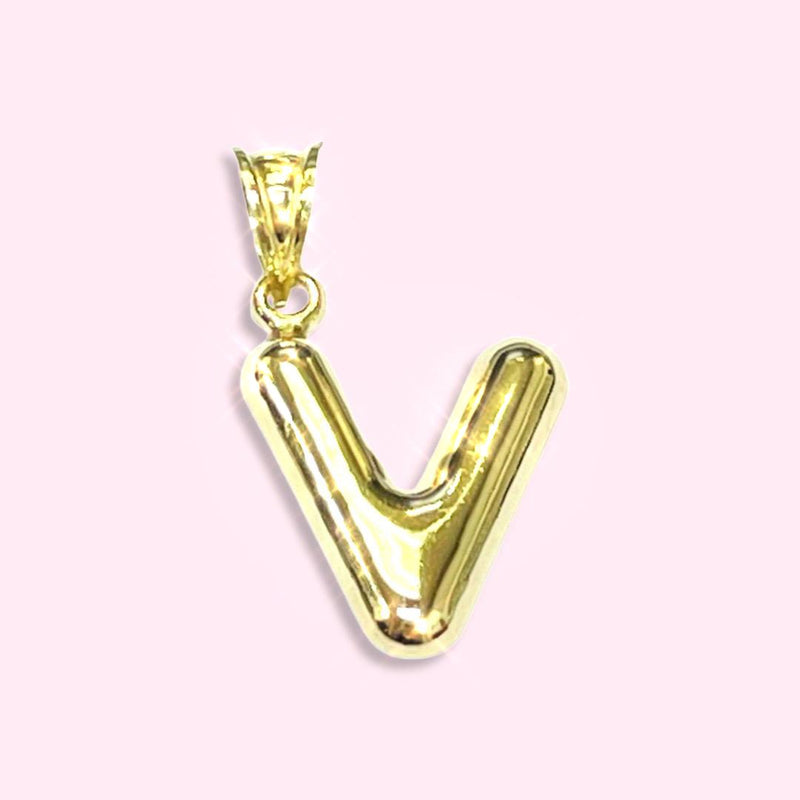 Initial V Puffy Balloon Letter 10K Yellow Gold Pendant