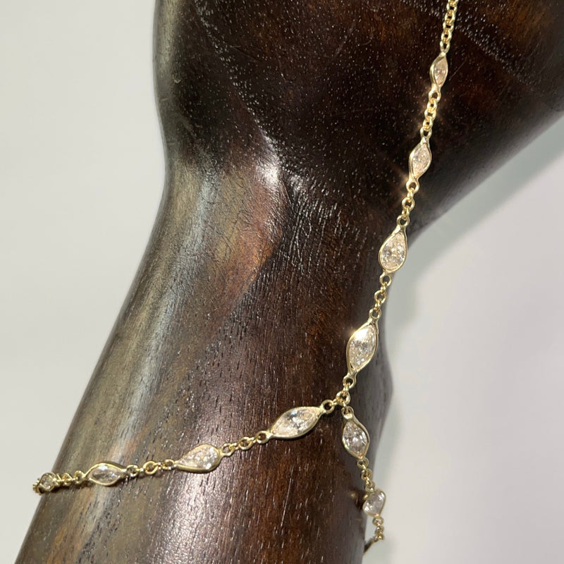 Stunning Marquise and Pear Diamond Hand Chain in Solid 18K Yellow Gold