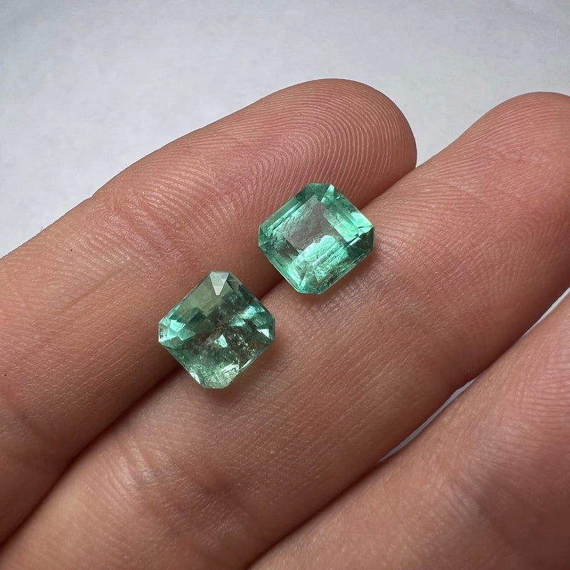 3.93CTW Pair of Natural Colombian Emerald Loose Ascher Cut