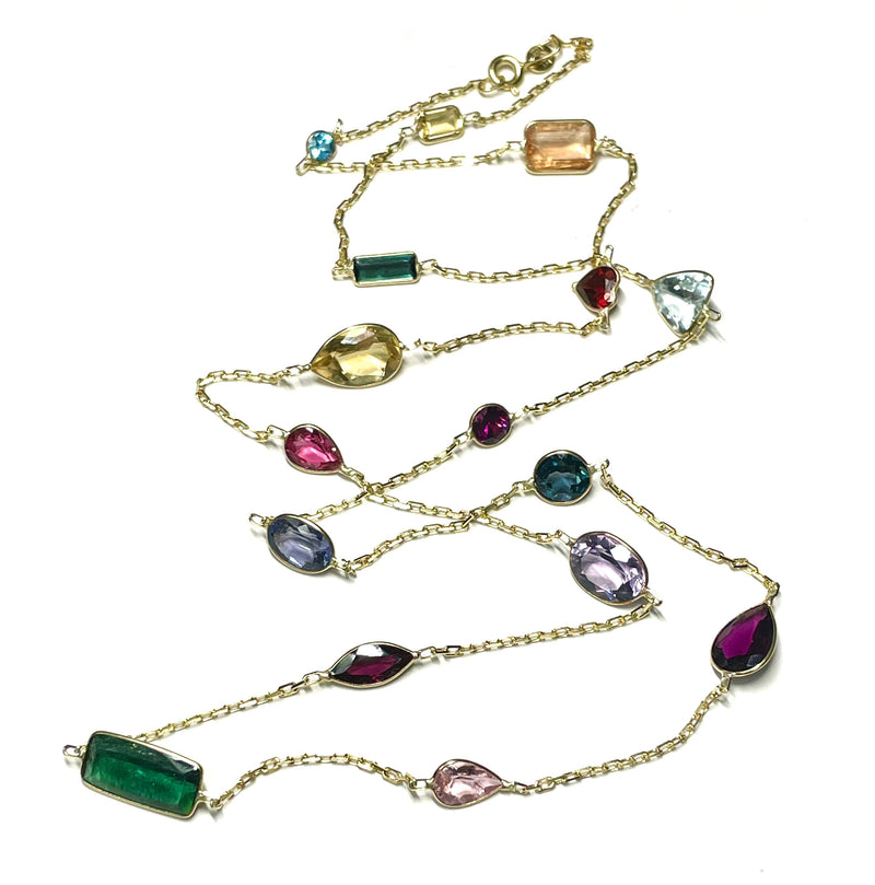 Stone range from tourmaline, aquamarine, amethyst, imperial topaz, topaz, citrine and garnet.