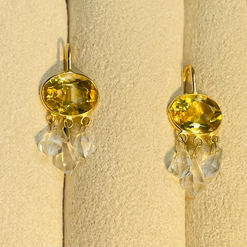 Morganite Briolette and Lemon Citrine 14K Yellow Gold Drop Earrings