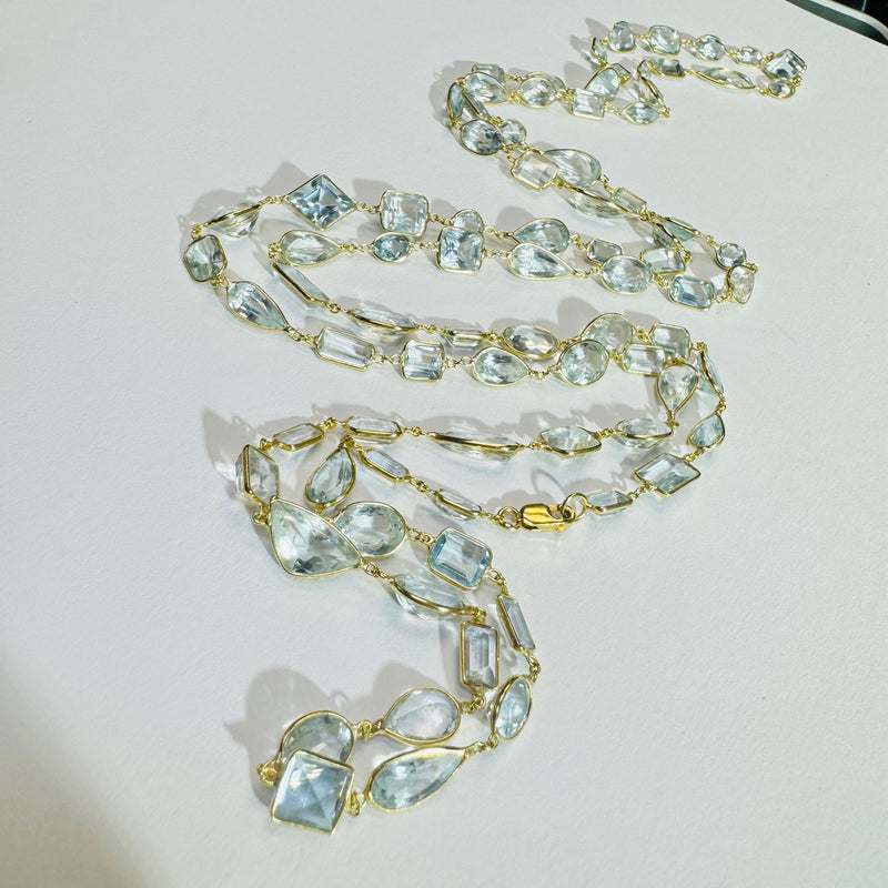 Natural 105 Carats of Aquamarine Solid 18K Yellow Gold By the Yard Necklace Super Long Necklace 42" Sale price$9,097.52