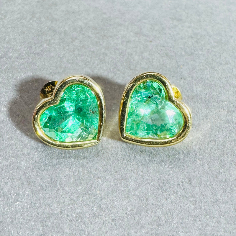 Natural 9CTW Colombian Emerald Heart Earrings 14K Yellow Gold
