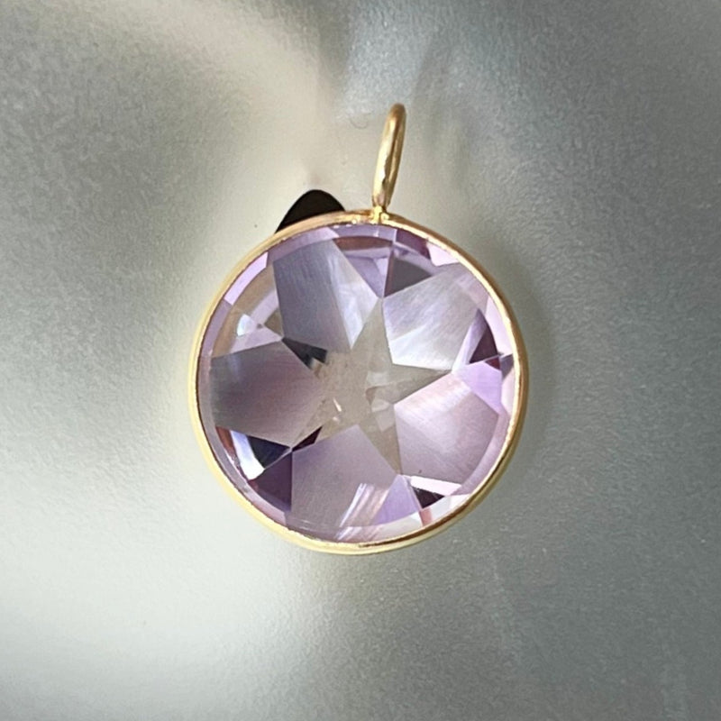 5.5CT Round Star Cut Rose of France Natural Amethyst 14K Yellow Gold Pendant Charm
