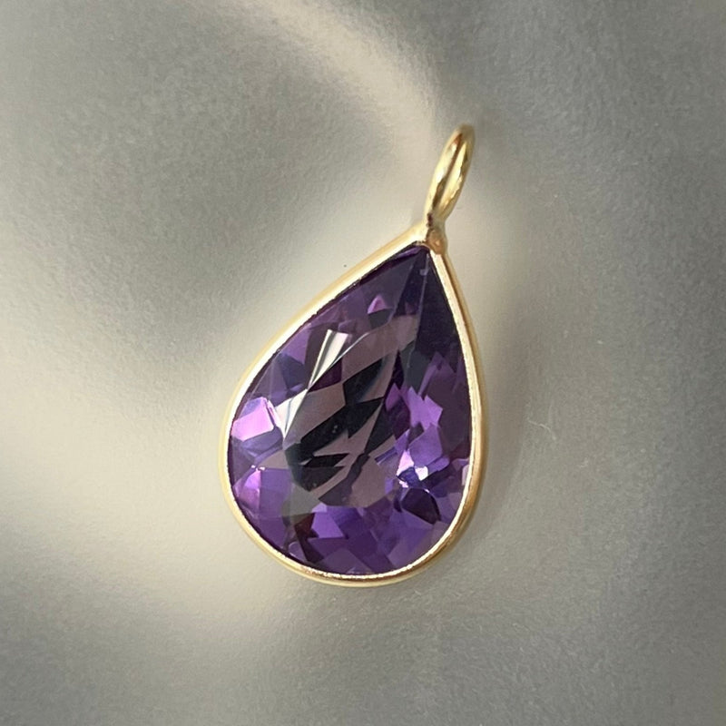 6.5CT Natural Pear Amethyst 14K Yellow Gold Pendant Charm