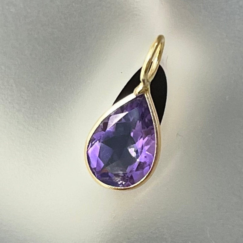 Natura Pear Shaped Amethyst 14K Yellow Gold Pendant Charm