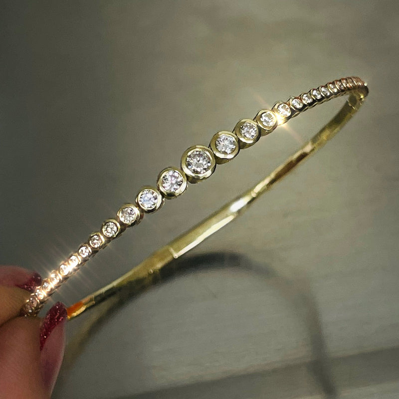 Natural Bezeled Diamond Graduated Flexible Bangle Tennis Bracelet 6.5"