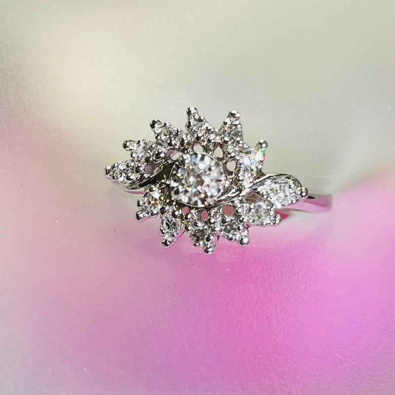Natural Diamond and White Gold Cocktail Ring Size 5.5