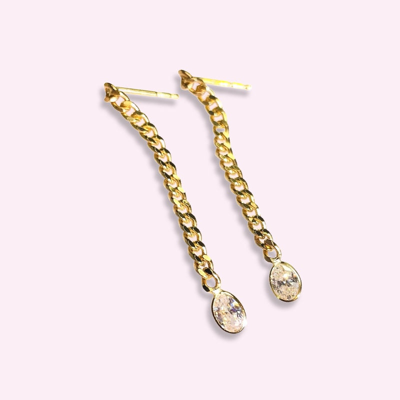 Natural Oval Diamond Long Cuban Link Chain 14K Yellow Gold Drop Earrings Sale price$1,768.53