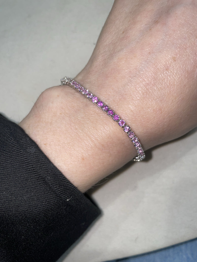 Natural Pink Ombre Sapphire 14K White Gold 7.25”