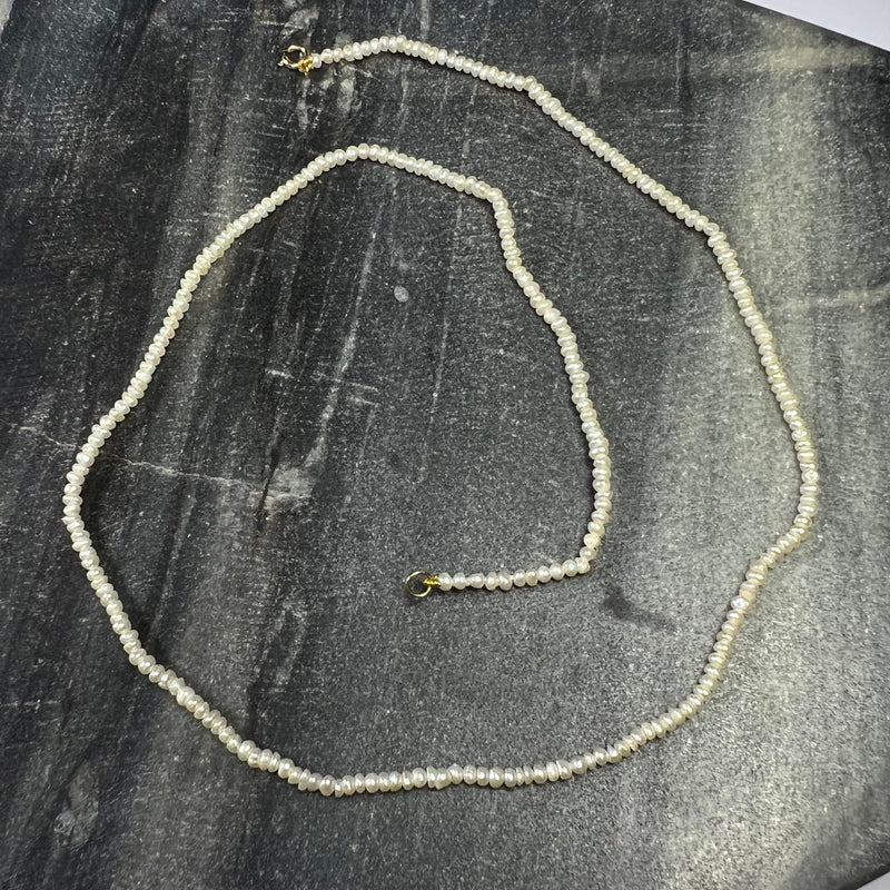 2mm Seed Pearl Necklace 14K Yellow Gold 15"