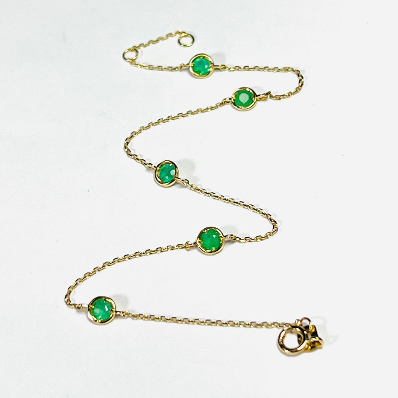18K Yellow Gold Dainty Cable Chain Emerald by the Yard Bracelet 7.5"
