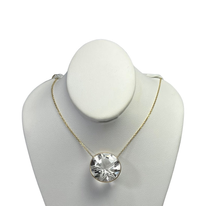 Large Star Quartz 20" 14K Yellow Gold Necklace.