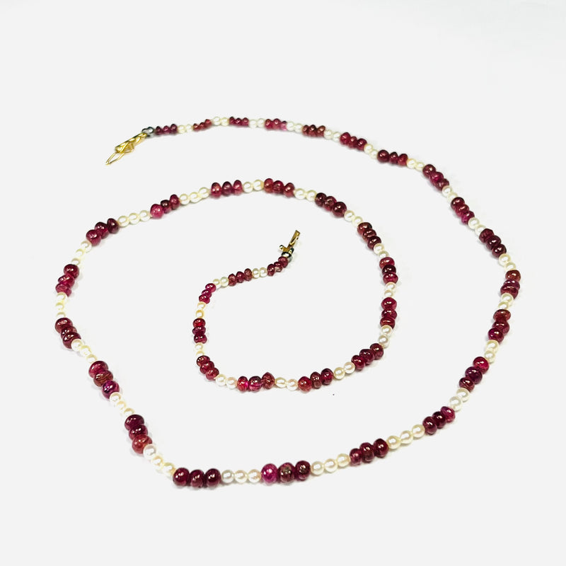 Ruby and Pearl Beaded Necklace 14K Yellow Gold Claps 21"