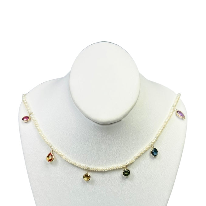 Seed Pearl Rainbow Sapphire Dangle Necklace 15.5" Sale price$1,029.98