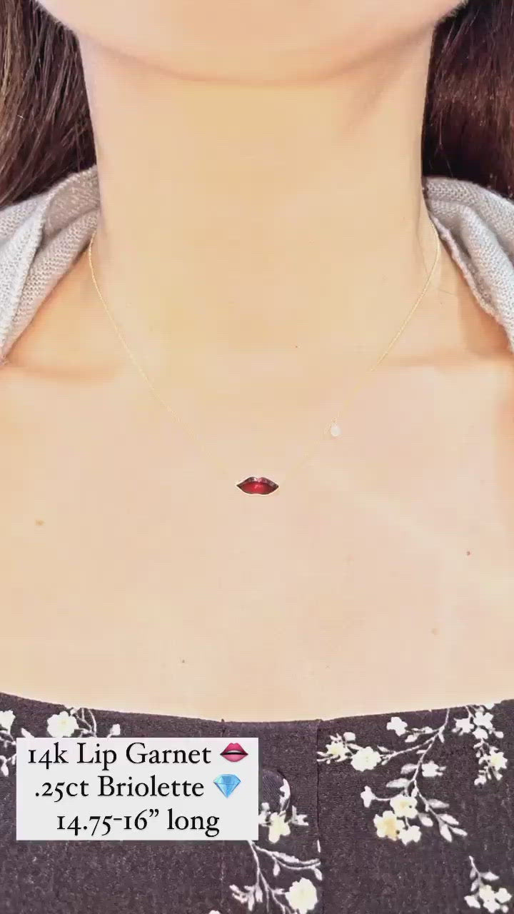 Lip Garnet and Briolette Diamond 16" 14K Yellow Gold Necklace