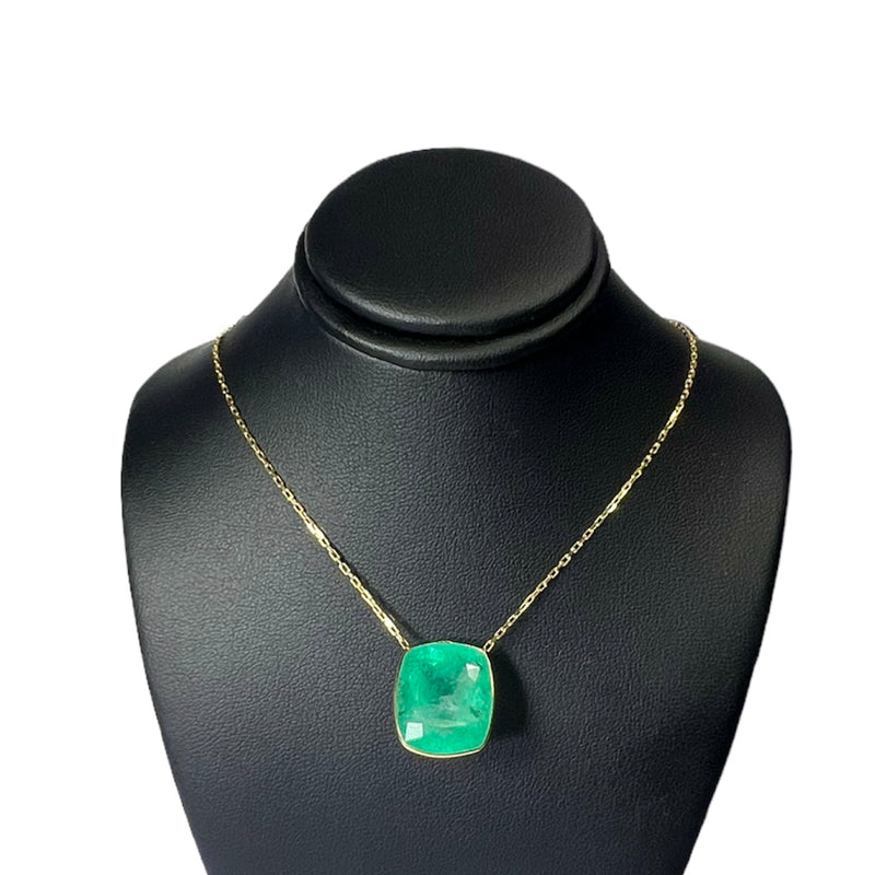 Made in solid 14K Yellow gold natural earth mined large green Emerald bezel wrapped.