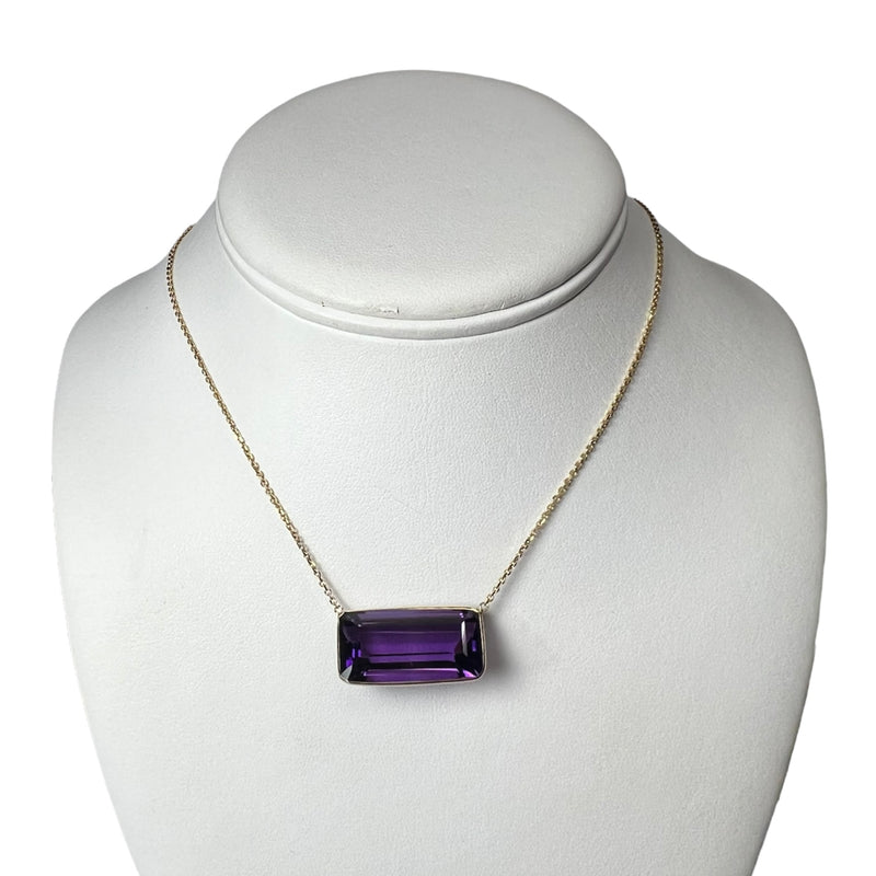 Made in solid 14K Yellow gold natural earth mined large purple Amethyst bezel wrapped.