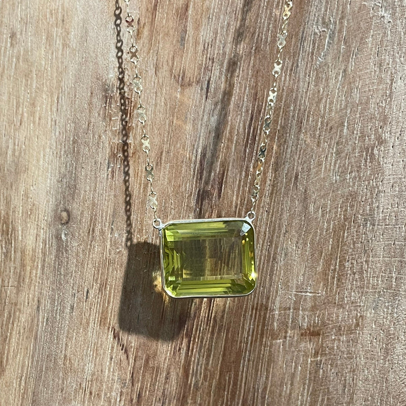 The citrine is bezel wrapped on a fancy solid 14K yellow gold link necklace