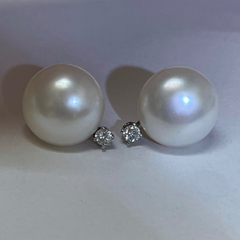 14mm Pearl and .16CT Diamond 14K White Gold Stud Earrings