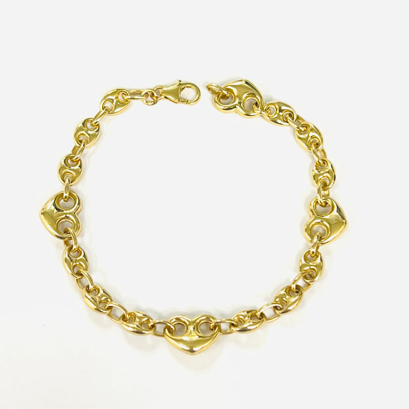 Puffy Heart 10K Yellow Gold Heart Link Bracelet