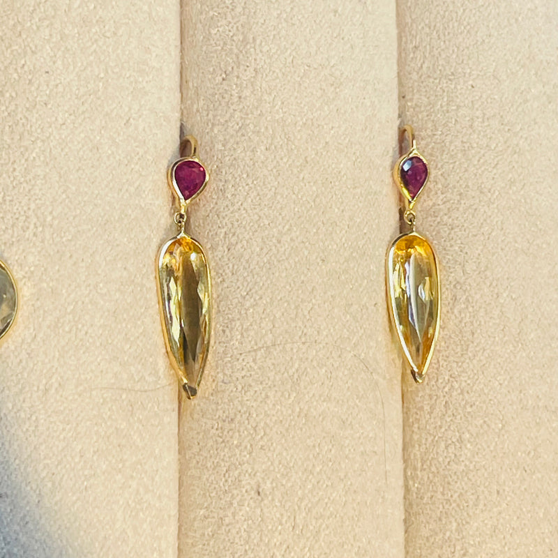 Ruby and Imperial Topaz 14K Yellow Gold Drop Earrings