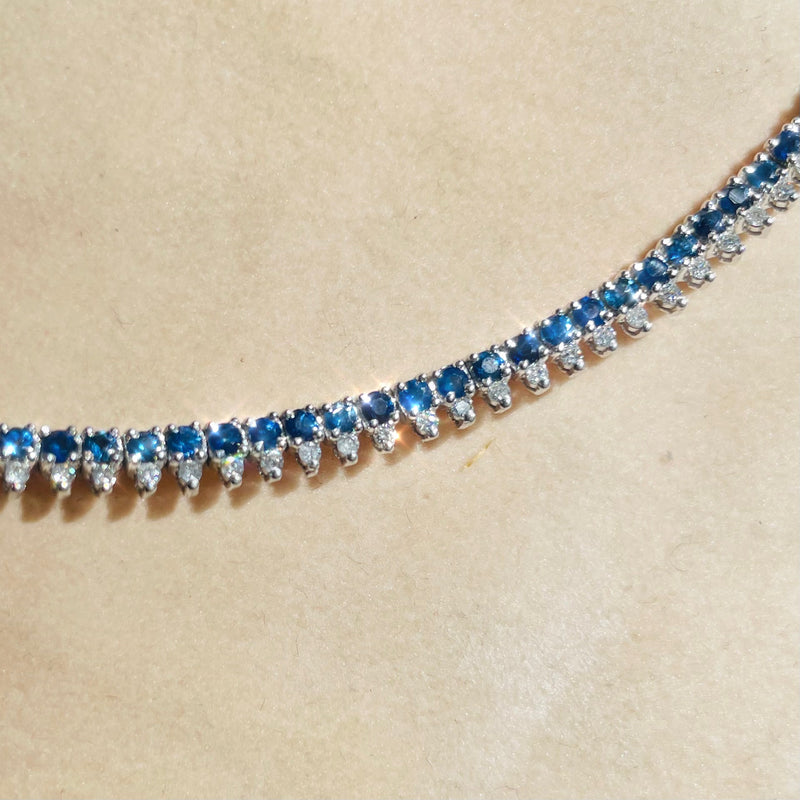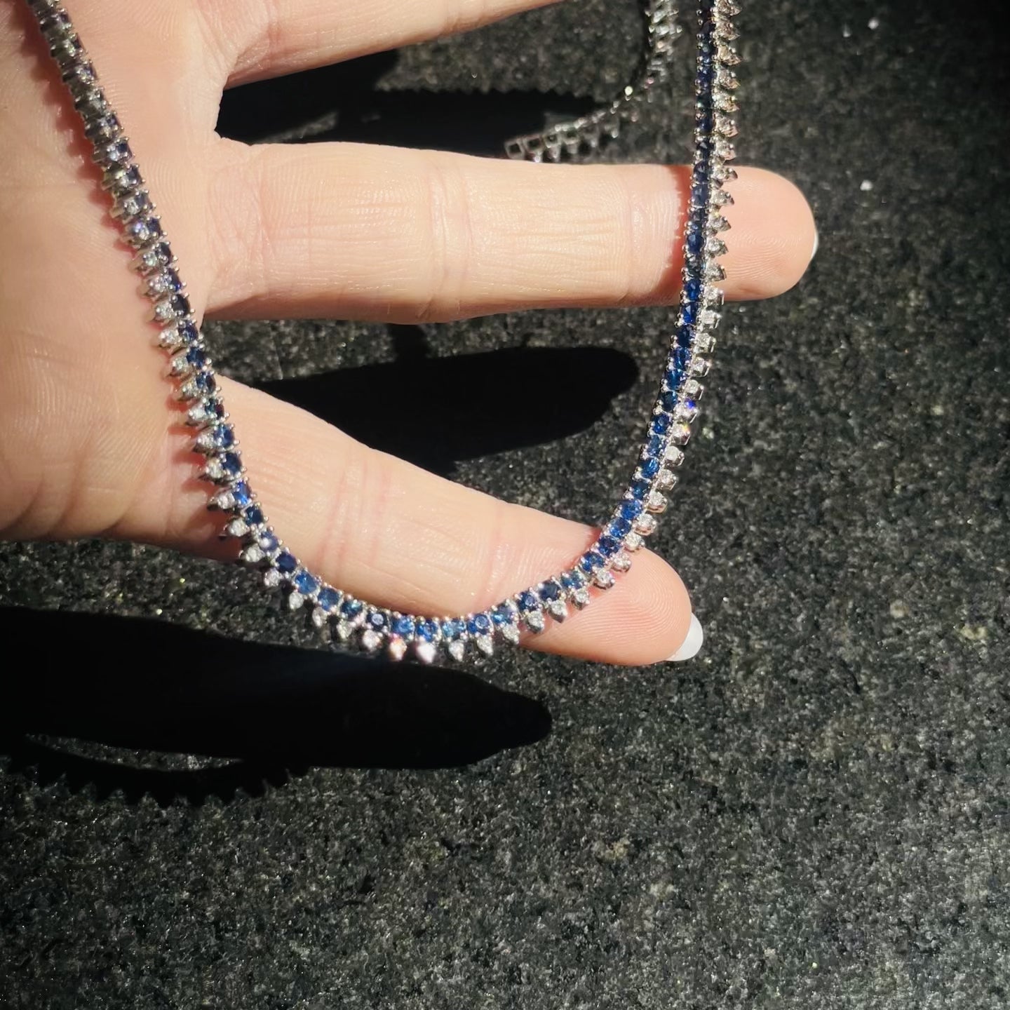 Sapphire and Diamond 14K White Gold Tennis Necklace Adjustable