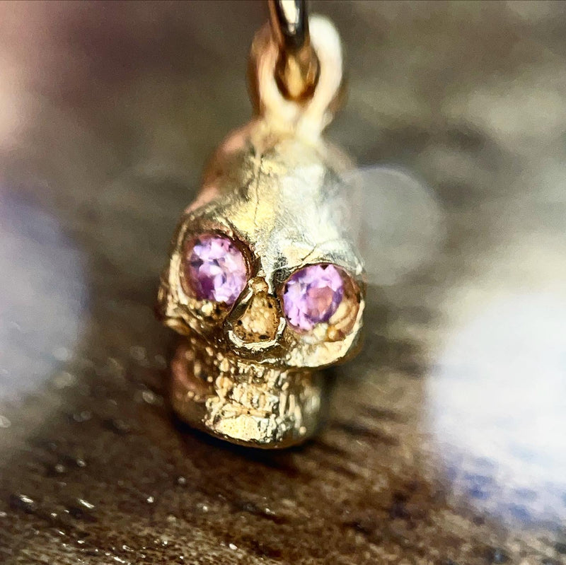 Solid 18K Small Pink Sapphire Skull Charm Sale price$369.83