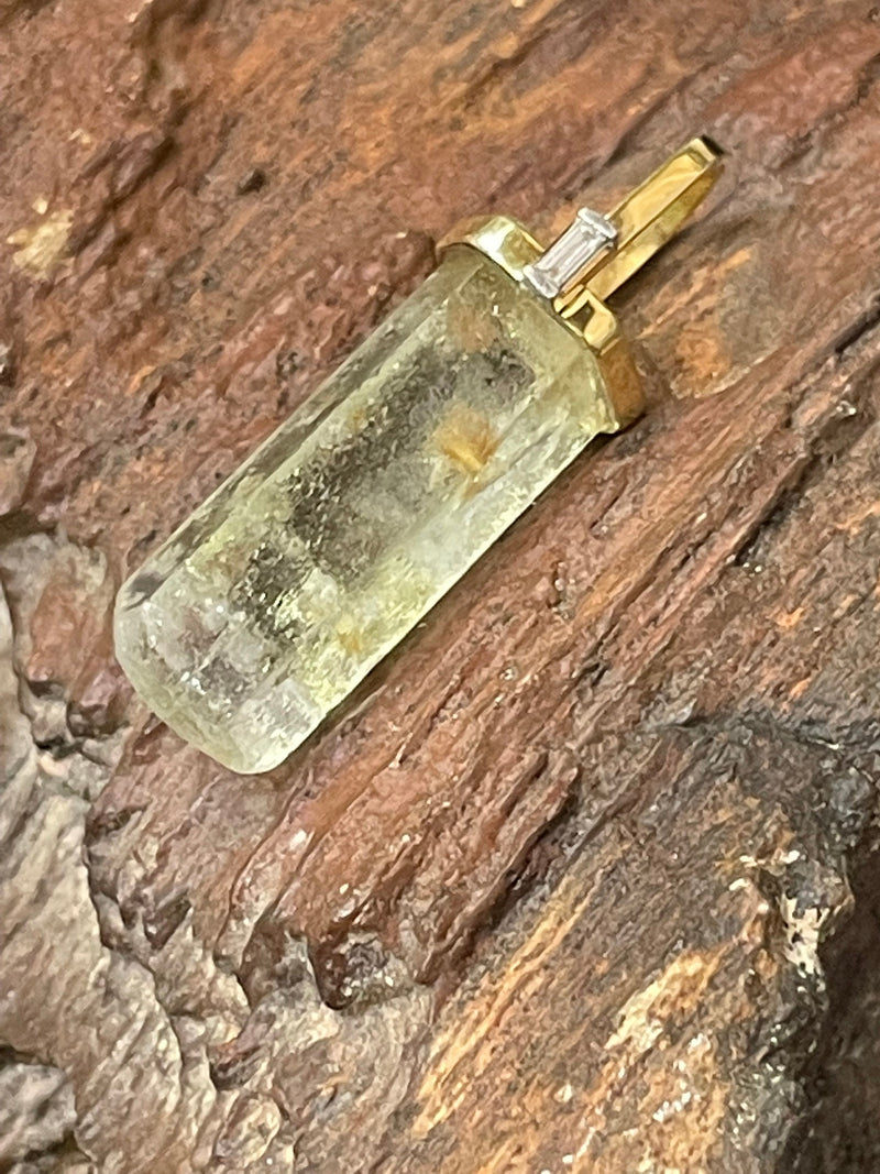 Solid 14K Yellow Gold Natural Rough Aquamarine and Baguette Diamond Pendant Charm