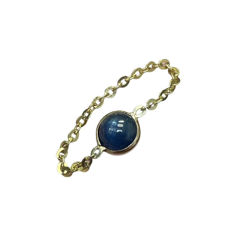 Solid 14K Yellow Gold Natural .90CT Sapphire Cabochon Chain Ring Size 5
