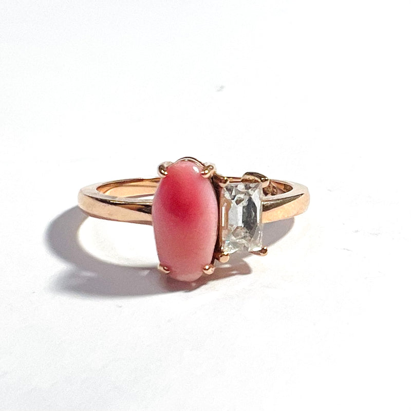 Stunning 18K Rose Gold ring with Conch Pearl and Diamond.