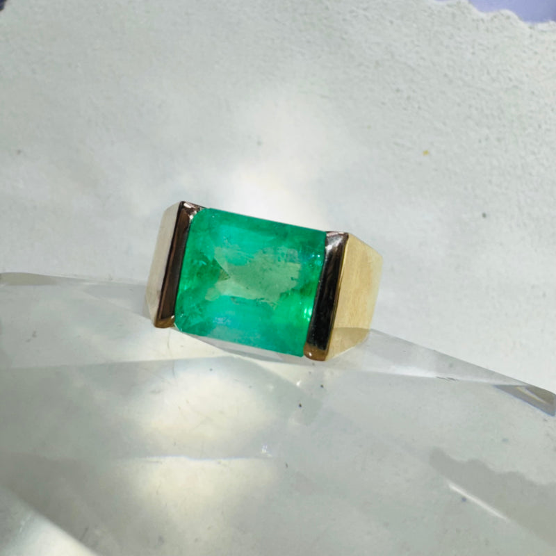 Solid 18K Yellow Gold Emerald Ring Size 6.25