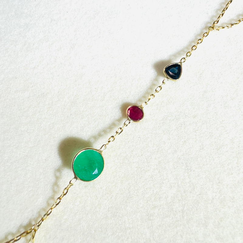Emerald Ruby and Sapphire 14K Yellow Gold Handchain Sale price$1,057.64