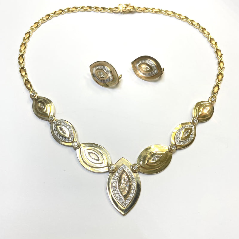 Stunning Vintage Solid 14K Marquis Diamond Almond Design Necklace and Earring Set Sale price$11,933.76