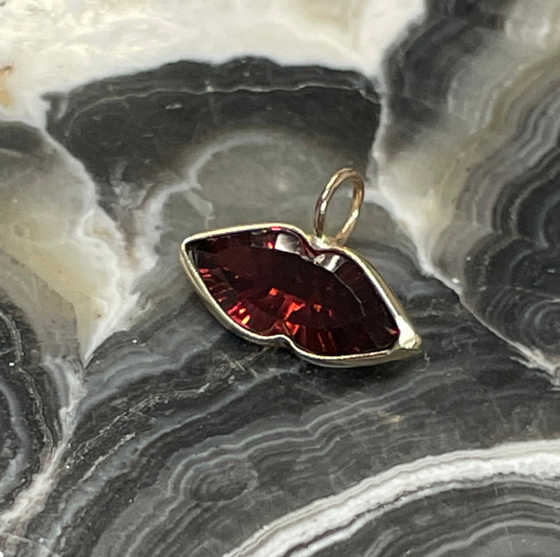Succulent Natural Vivid Red Garnet and 14K Yellow Gold Pendant Charm