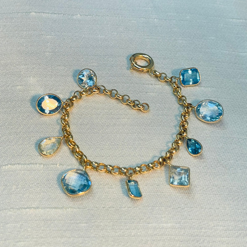 Natural Blue Topaz Dangling 14K Yellow Gold Charm Bracelet Sale price$1,669.59