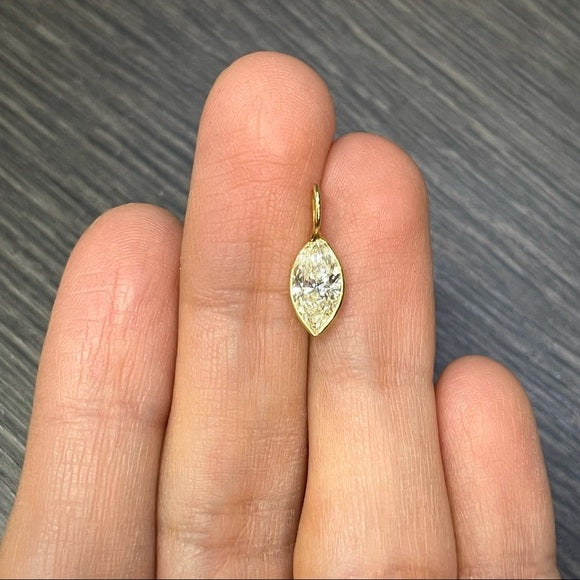 1.1CT Marquise Fancy Light Yellow Diamond Pendant Charm in solid 14k Yellow Gold
