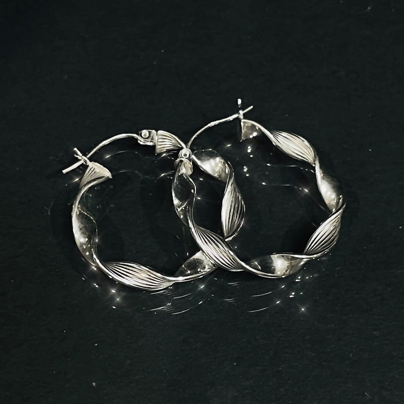 1.2” 4mm 14K White Gold Twisted Hoop Earrings