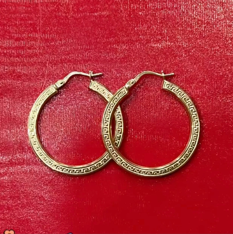 1.25” 3mm Greek Key Pattern Hoop Earrings