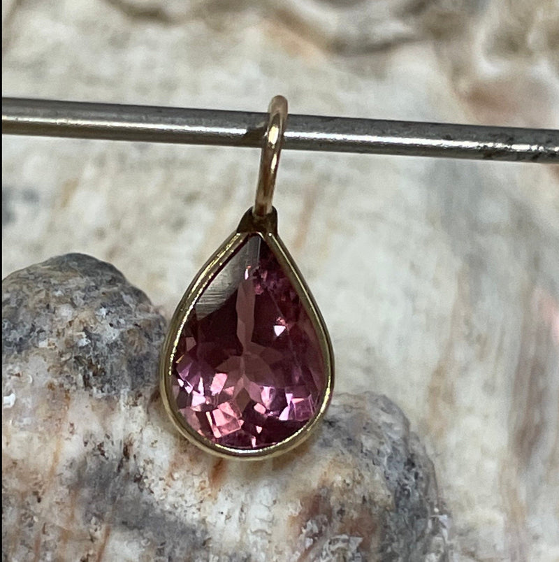 1.6CT Purplish Tourmaline Pear Shape in Solid 14K Yellow Gold