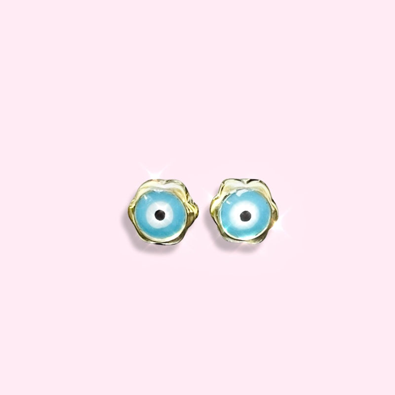 10K Yellow Gold 5mm Teal Blue Evil Eye Stud Earrings