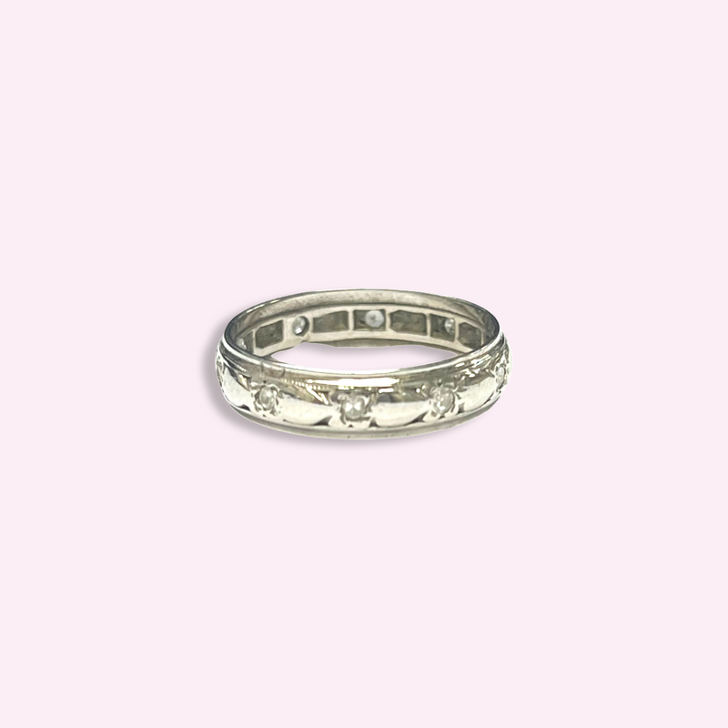 14K Prong Set Diamond White Gold Ring Band Size 6.75