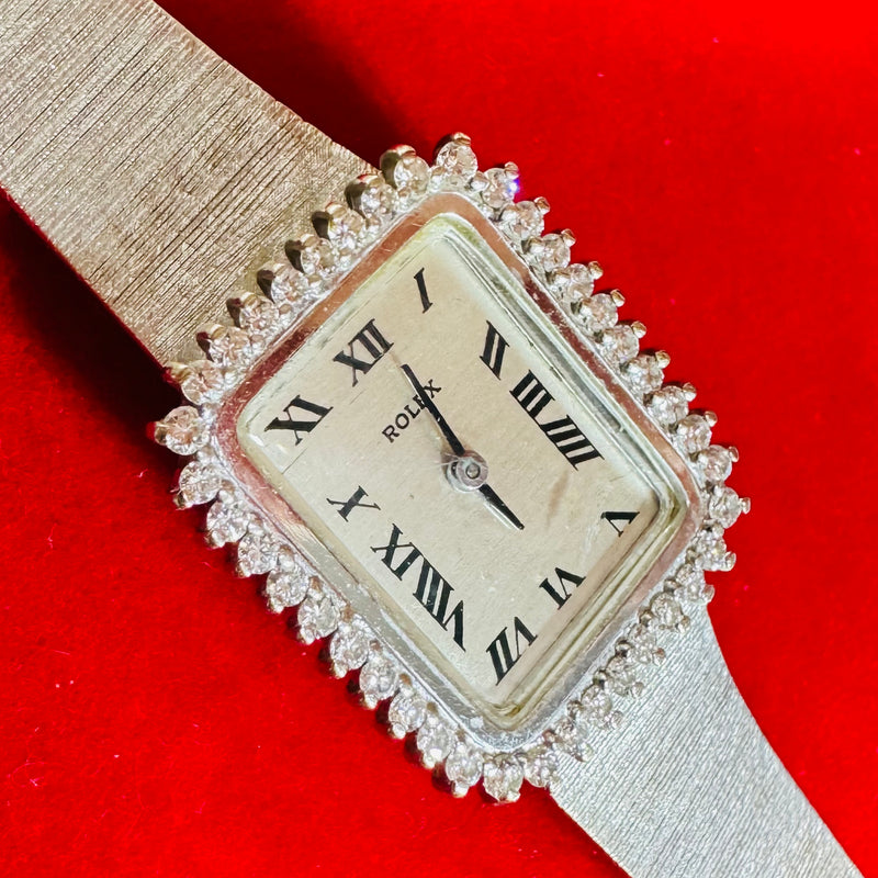 14K White Gold Diamond Roman Numeral Dial Rolex Ladies Vintage Cocktail Watch
