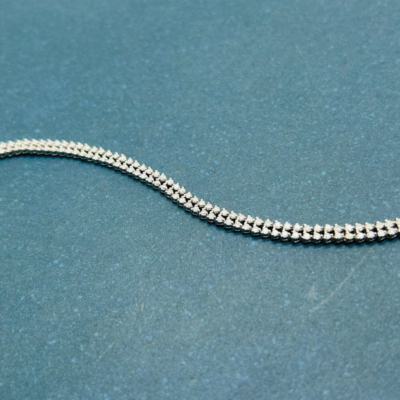14K White Gold Natural Double Diamond Row Tennis Bracelet 7”