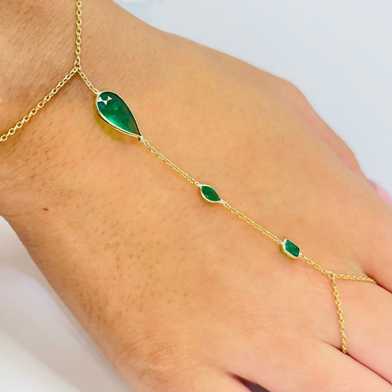 14k Yellow Gold 3 Stone Colombian Emerald Handchain Sale price$1,145.00