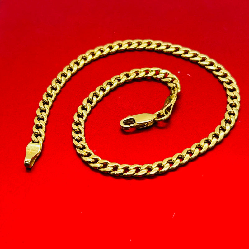 14K Yellow Gold 3.5mm Curb Link Chain Bracelet 8.75”