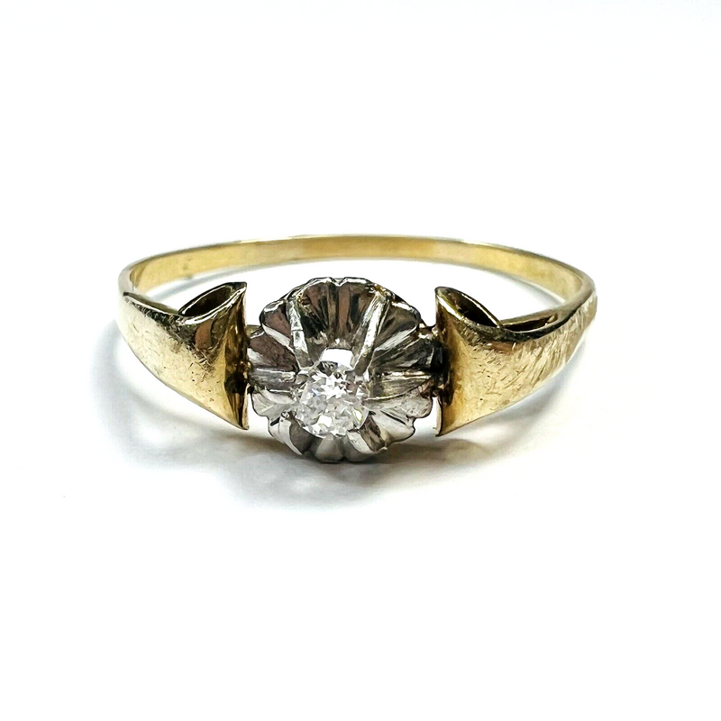 Antique 14K Yellow Gold Diamond Solitaire Ring Band Size 8.25