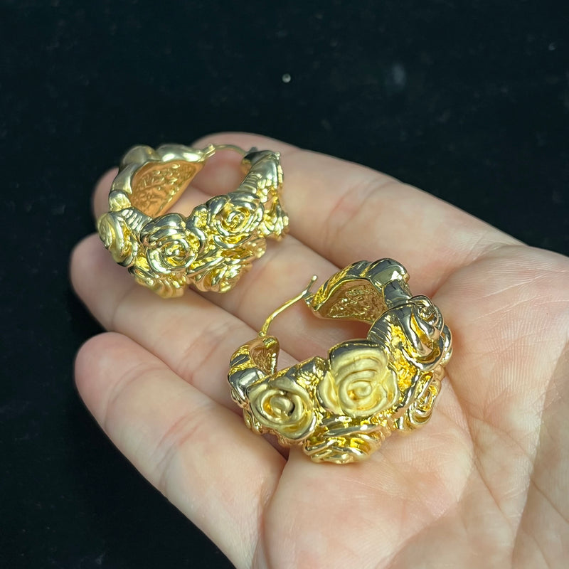 Gorgeous 16mm Thick Rose 1.25" 14K Yellow Gold Hoop Earrings