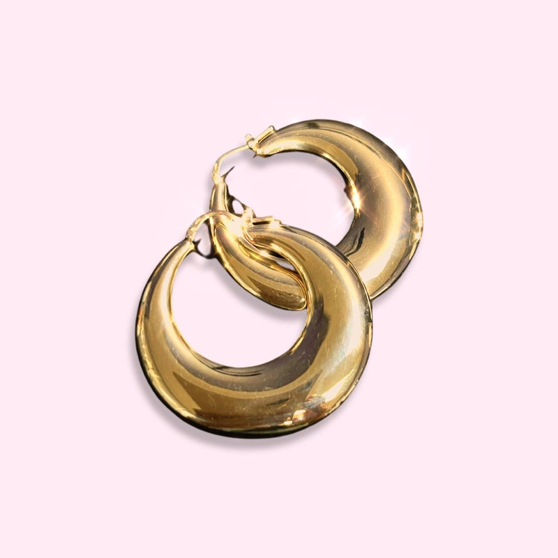Large 1.75" Tapered Nice Rounded Puffy 14K Yellow Gold Hoop Earrings